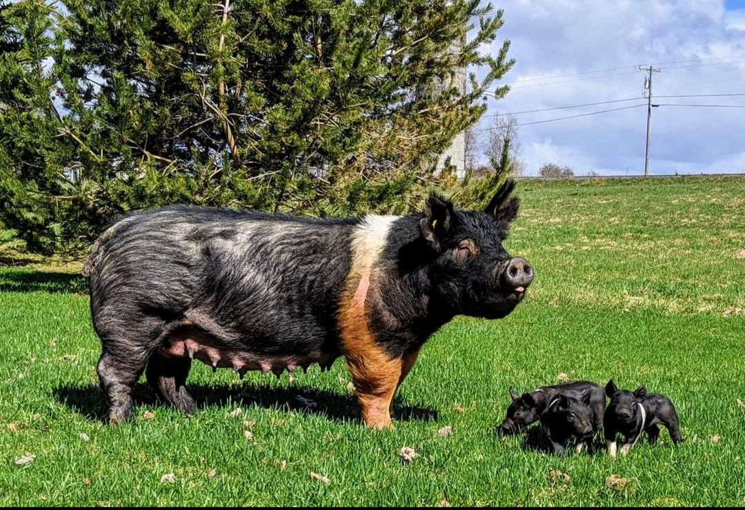 Our farm tells the story of agriculture done right: heritage Duroc pigs that root and roam on pasture, developing the marbling and flavor their genetics were meant to produce, and registered sheep that graze our rolling hills in rotational patterns that keep both animals and land healthy. Located in the heart of New York's scenic Mohawk Valley, this operation reflects four generations of farming wisdom adapted for modern family life. Between Ashley's Cornell-educated livestock management and Adam's commercial industry experience, our animals receive care that balances traditional methods with contemporary animal welfare standards.